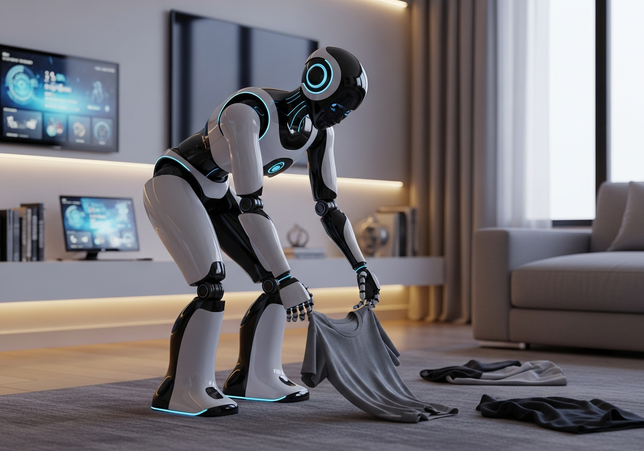 Un robot humanoïde conçu pour assister efficacement dans la maison. Une vision réaliste de l’IA incarnée au quotidien.