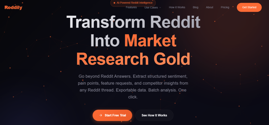 Son atout principal : l’extraction de clusters de thématiques. Au lieu de simples nuages de mots, Reddily identifie les problèmes structurels de votre industrie (idéal pour l’idéation de contenu et le GTM).
